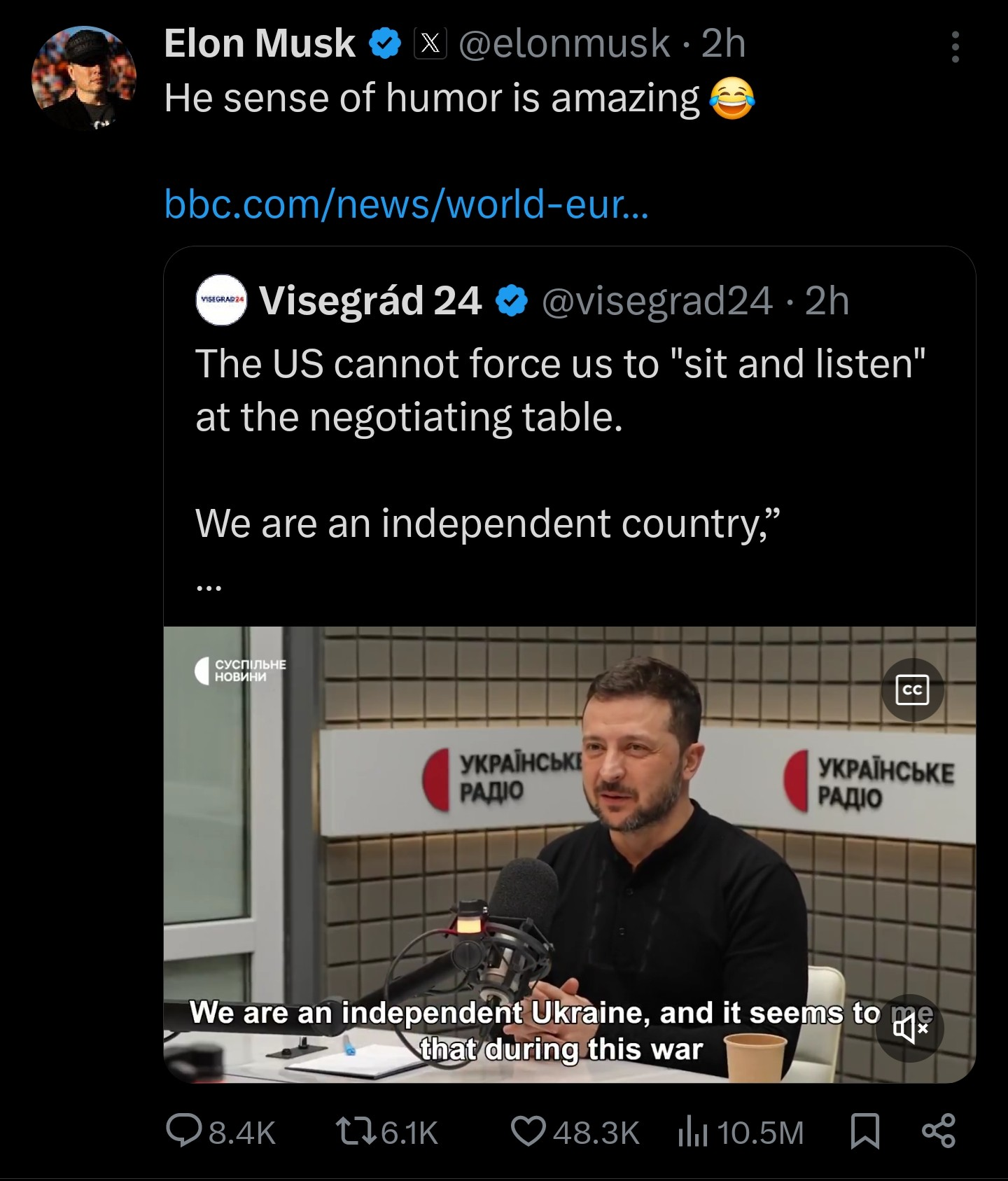 Nevertheless, in a world of Elon, be a Zelensky.